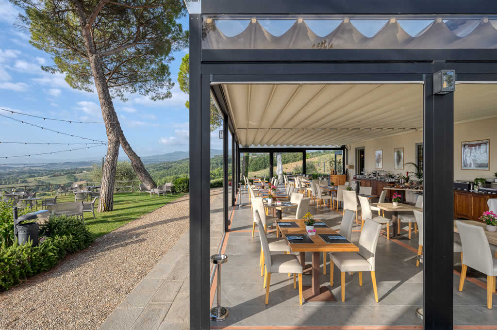 Location ideale sia per il pranzo che per la cena, dispone di un'ampia cantina con un'attenta selezione di vini toscani, per il giusto accompagnamento dei piatti.